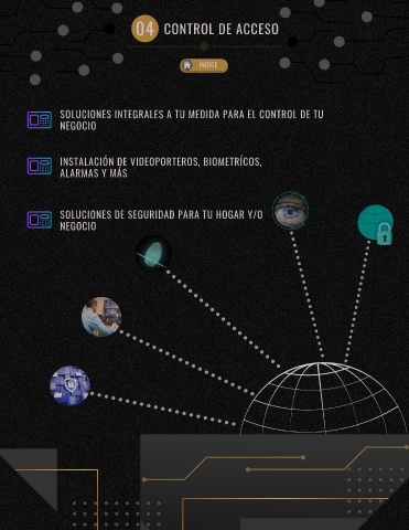 04 CONTROL DE ACCESO ÍNDICE SOLUCIONES INTEGRALES A TU MEDIDA PARA EL CONTROL DE TU NEGOCIO INSTALACIÓN DE VIDEOPORTEROS, BIOMETRÍCOS, ALARMAS Y MÁS SOLUCIONES DE SEGURIDAD PARA TU HOGAR Y/O NEGOCIO
